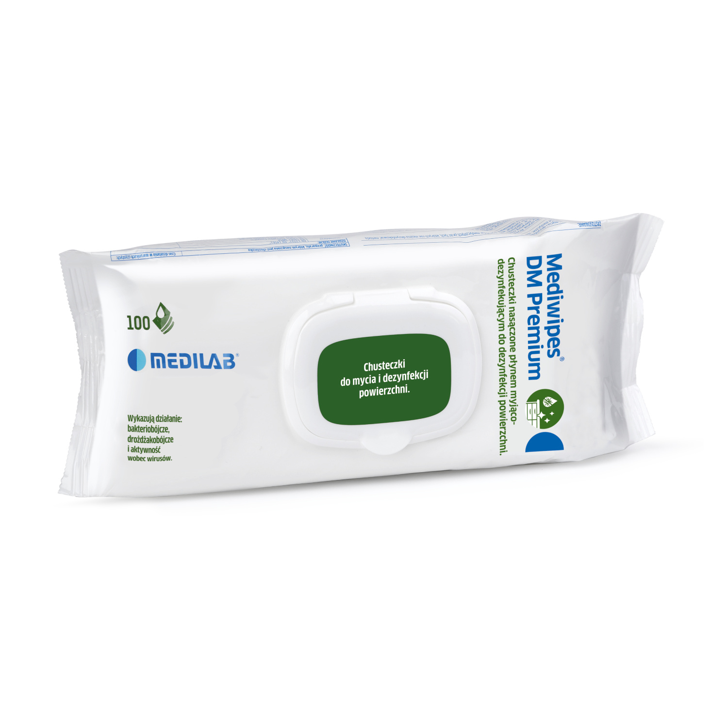 - Mediwipes DM premium to gotowe do użycia chusteczki, które jednocześnie myją i dezynfekują małe powierzchnie, wyroby medyczne i różnego rodzaju wyposażenie, wrażliwe na działanie preparatów alkoholowych.